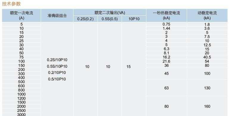 三、LZZBJ9-10A1G、LZZBJ9-10B1、LZZBJ9-10C1戶內電流互感器 技術參數