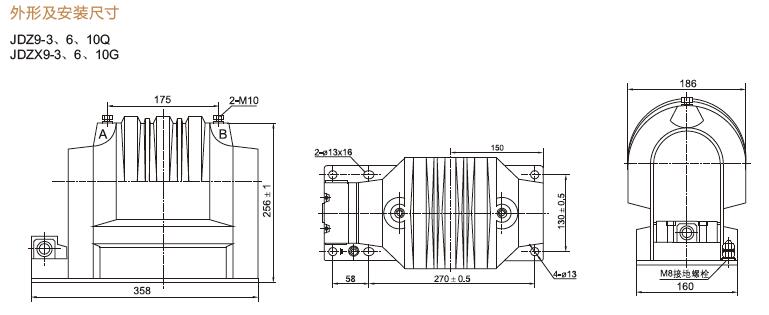 五、JDZ9-6Q,JDZ9-3Q、JDZ9-10Q電流互感器產(chǎn)品外形及安裝尺寸