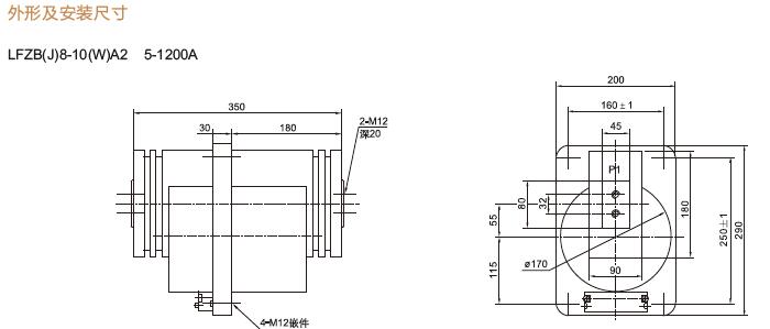三、LFZBJ8-10A2、LFZB8-10B2穿墻式電流互感器安裝尺寸
