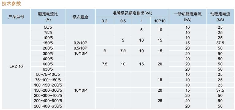 四、LRZ-10電流互感器技術(shù)參數(shù)